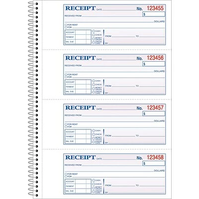 Document your receipts with the attached duplicate. Each slip is conveniently numbered, so you can easily locate past receipts for reference.