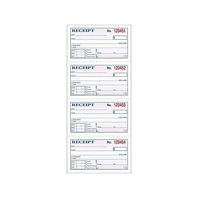 Keep a copy of all sales and cash payments with this two-part receipt book. The carbonless construction eliminates messy smeared ink, and the receipts are number consecutively, which makes them easy to track. This Adams receipt book is spiral bound, which makes it easy to turn the pages.