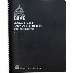 For businesses having 1 to 50 employees. No name, figure or word is duplicated throughout the year. Double page spread holds employee’s records for the entire year. Eight columns for deductions. Not dated – start any time. Good for a full year. Size