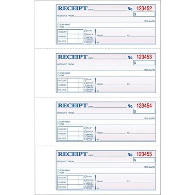 Adams® Money and Rent receipt book features carbonless copied canary, pink and white colored backing pages to have a permanent record of each transaction. Receipt book has consecutively numbered pages and is sold as 100 sets per book.