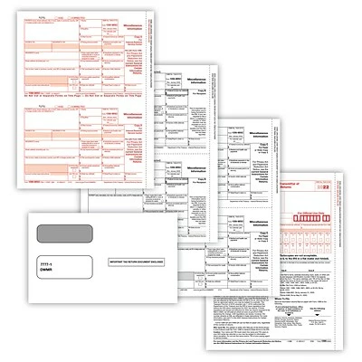 Pre-packaged four-part form set contains copies A, B, C, “Copy 2”, with envelopes and three 1096 transmittal forms