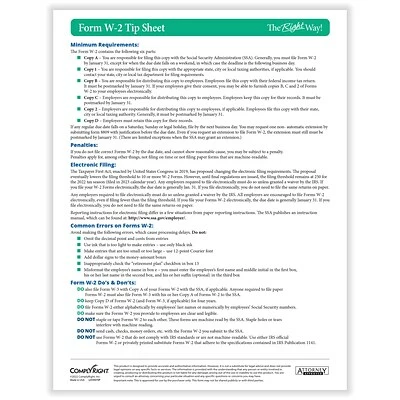 Tax Form Kit includes: 4-Part W-2 laser forms, self-seal double window envelopes, transmittal forms (3) and tip sheet with guidelines on minimum requirements, penalties and common errors.