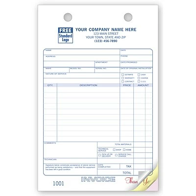 Preprinted section. Includes preprinted section, for customer to sign-off on service/work as acceptable