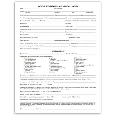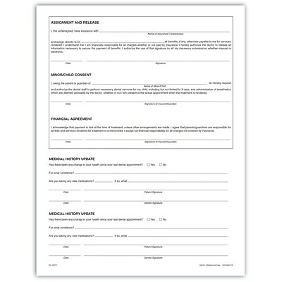 Has special sections for parent information, insurance authorization, and 2 medical history updates