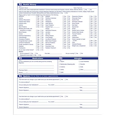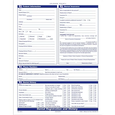 Includes sections on patient information, insurance, history and more