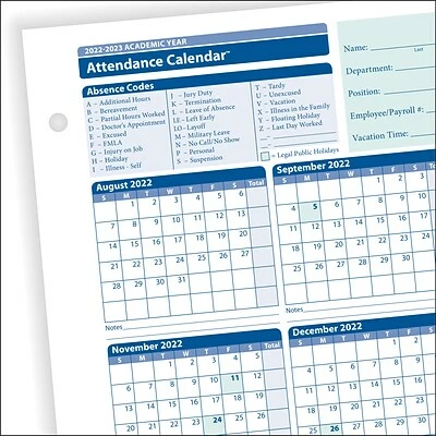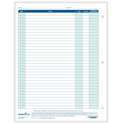 The efficient calendar format of the ComplyRight Academic Year Attendance Calendar™ (August 1 – July 31) and easy coding system make tracking absences quick and convenient. The reverse side of the cards includes plenty of space to record notes and warnings. This pack of 50 includes ComplyRight tips for optimal use