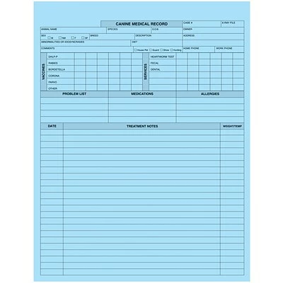 Helps track appropriate vaccinations, tests, problems, medications and allergies for dogs
