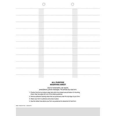 Keep patient records organized and accessible. Use for progress notes, transcription or almost any patient record. Layer records along adhesive with most current on top. Printed on 60 lb. offset stock. 2-hole punched. Size: 8-1/2″ x 11″.