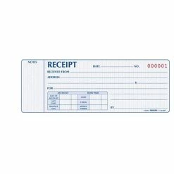 The Rediform® Money Receipt Book is a manifold receipt book with flexible cover. 50 carbonless triplicate sets. First copy is white, second yellow and third is pink with a safety tint on the original. Also includes stop card to prevent write-through.