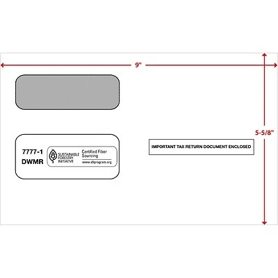 This ComplyRight double-window envelope accommodates the ACA 1095-B tax form. Features a moisture seal flap.