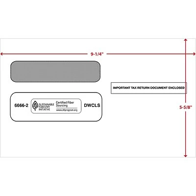 This ComplyRight double-window envelope accommodates the 2-up W-2 tax form. The windows display both payer and recipient name and address. Self-sealing for added convenience.