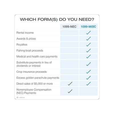 Don’t forget to add two-up 1099 envelopes (not included)
