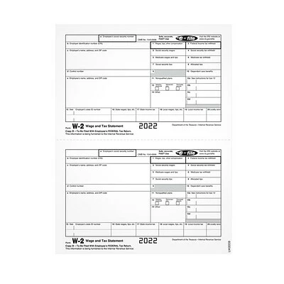 Satisfy IRS Tax requirements with TOPS W-2 Tax Forms. W-2 Wage & Tax Statement – 1 part Copy B cut sheet laser form. Laser printer compatible. Size: 8 1/2″ x 11″.