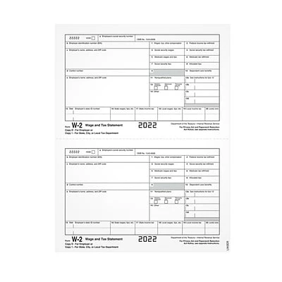 W-2 Tax Forms for every employer with one or more employees to report employee wages, tips, Federal Income and Social Security Tax withheld by the Federal Government
